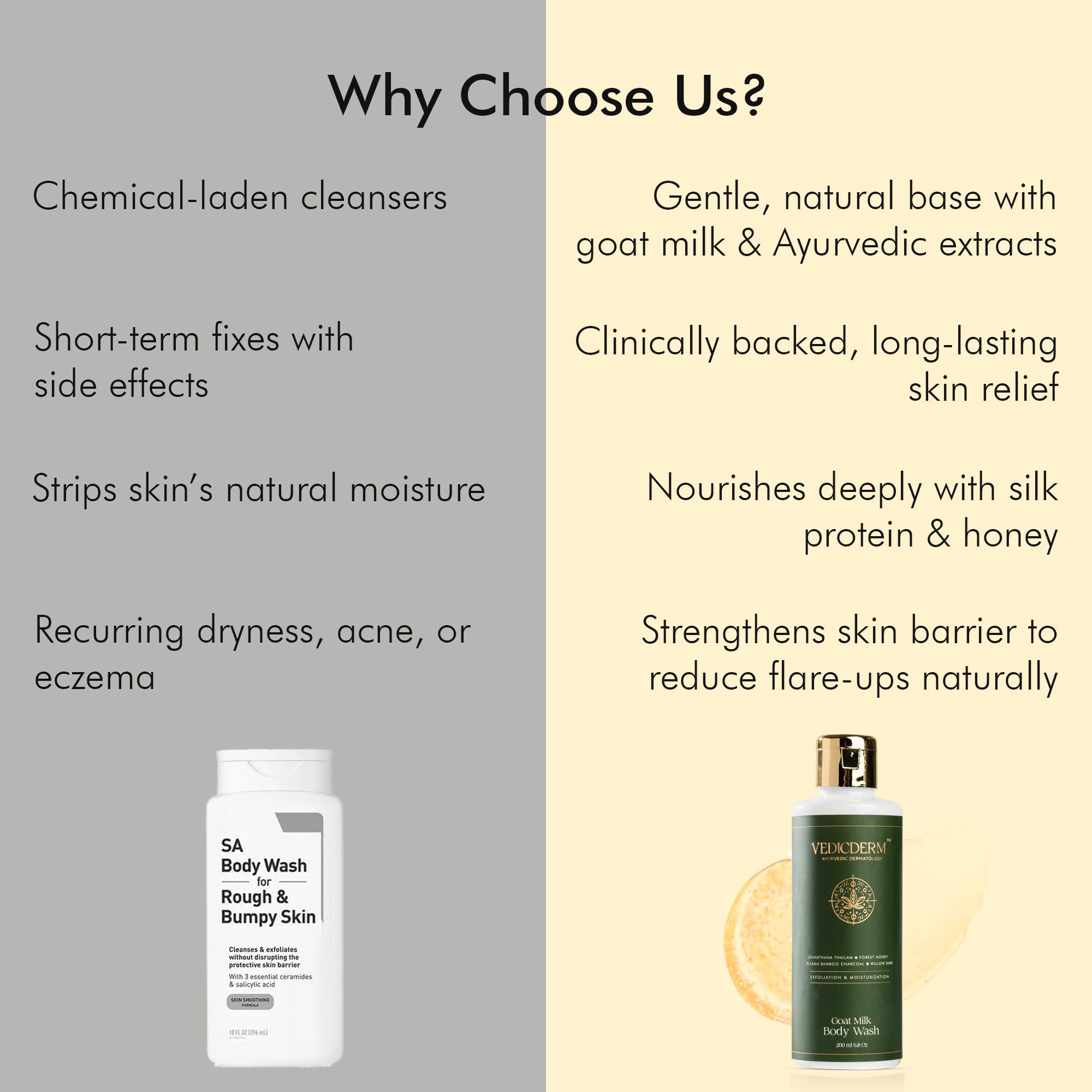 Yes, the Goat Milk Body Wash is dermatologist-recommended for its gentle and nourishing formula. It is specially designed to suit all skin types, including sensitive and acne-prone skin. Enriched with natural ingredients like goat milk, honey, and silk protein, it hydrates and soothes while cleansing deeply. Free from sulfates, parabens, and artificial fragrances, this body wash is crafted to maintain your skin’s natural barrier, making it a safe and effective choice for daily use.