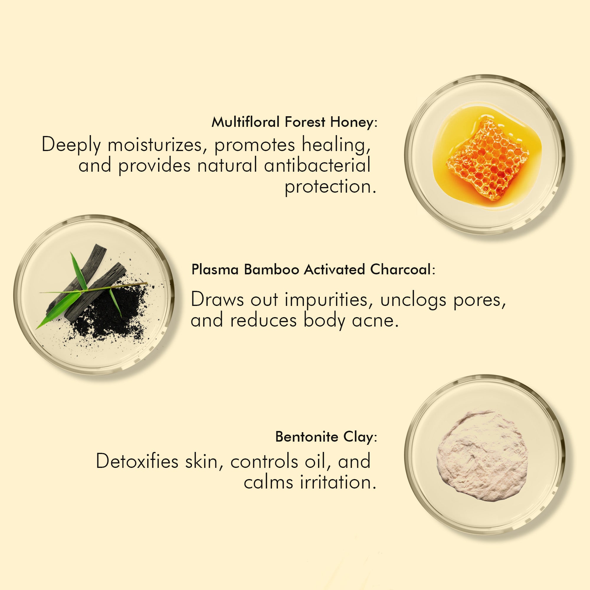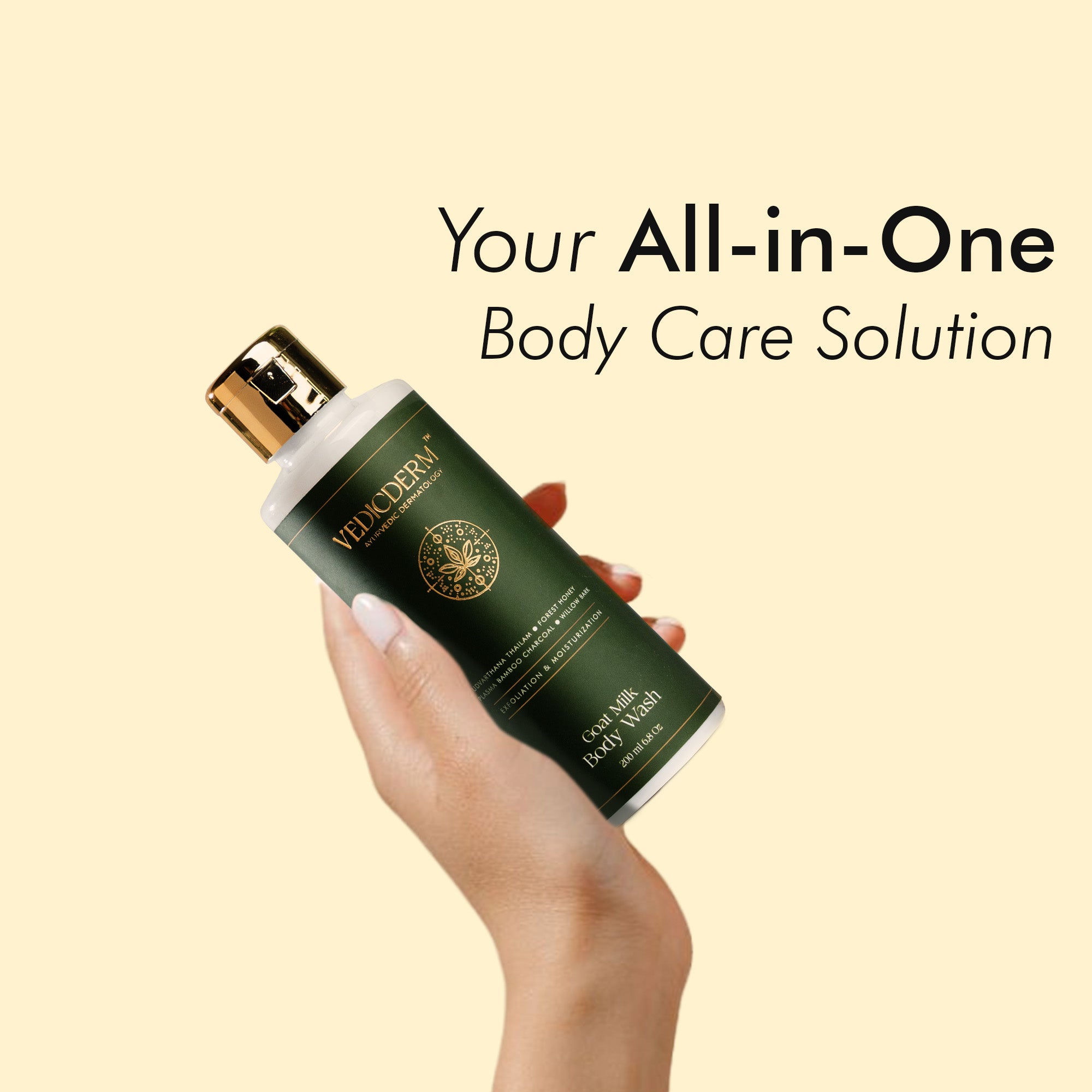 Indulge your skin with the nourishing power of Goat Milk Body Wash, formulated to gently cleanse and hydrate without stripping your skin’s natural moisture. Infused with rich ingredients like Udvarthana Thailam, Multifloral Forest Honey, and Silk Protein, this body wash works to soothe dryness, unclog pores, and address skin flaking. The unique combination of Rhassoul Clay, Bentonite Clay, and Plasma Bamboo Activated Charcoal draws out impurities, while Nano Gold 24kt and Bifida Probiotic help restore the skin's natural barrier, reducing body acne and keeping your skin soft and radiant.