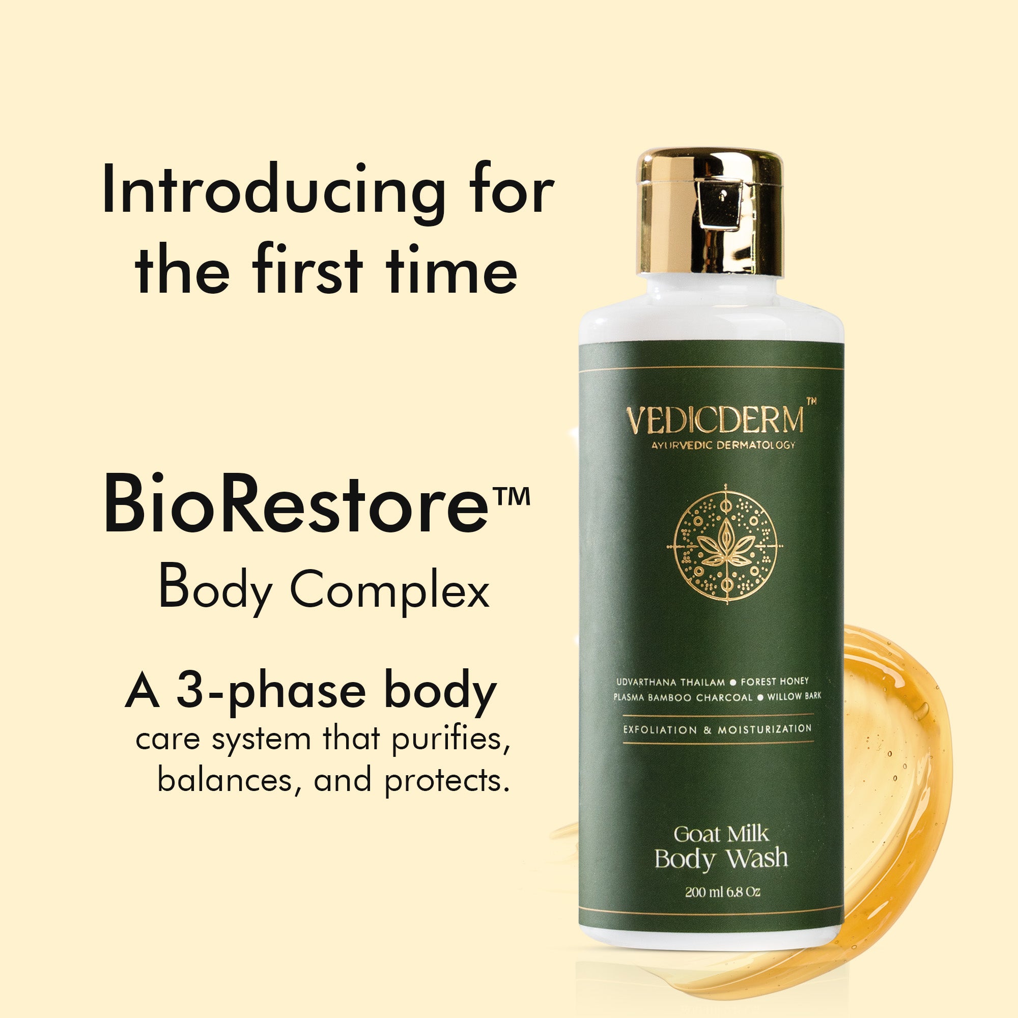 Most commercial washes strip the skin. This one works on skin barrier support using a blend of Ayurvedic oils and cutting-edge ingredients like Glycoin, Nano Gold, and probiotics.