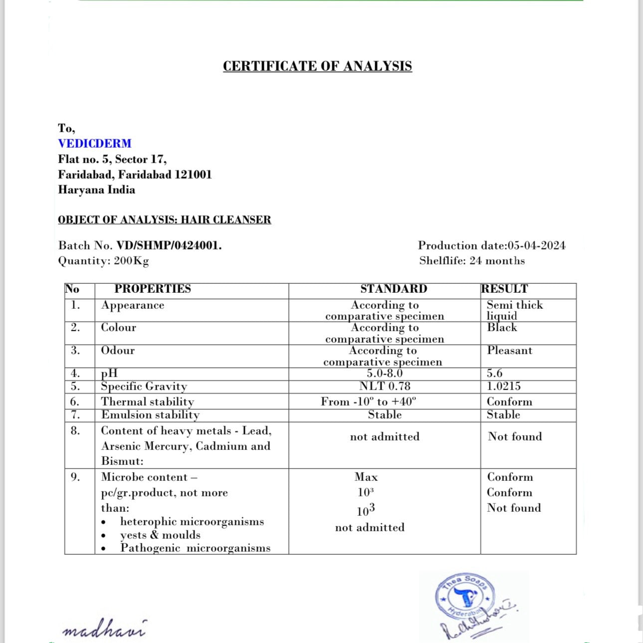 These chemicals might give results in short run, however, they can cause thinning of skin, poor hair nutrition and subsequent hair breakage and hair fall. Therefore, it is not advisable to use these chemical shampoos on a regular basis. Our shampoo contains no chemicals not even for fragrance. It is a good addition to any on going treatment.