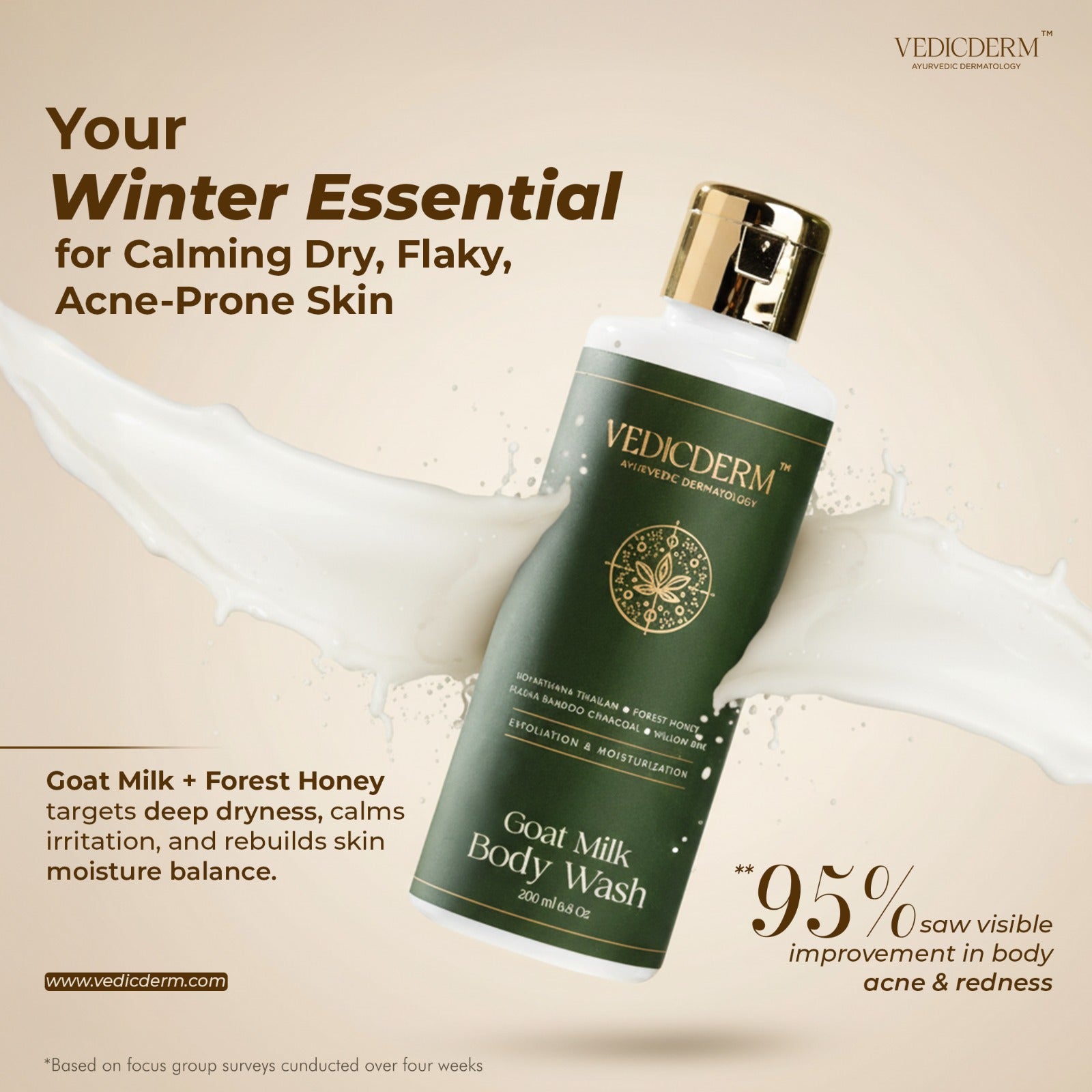 Yes, the Goat Milk Body Wash is dermatologist-recommended for its gentle and nourishing formula. It is specially designed to suit all skin types, including sensitive and acne-prone skin. Enriched with natural ingredients like goat milk, honey, and silk protein, it hydrates and soothes while cleansing deeply. Free from sulfates, parabens, and artificial fragrances, this body wash is crafted to maintain your skin’s natural barrier, making it a safe and effective choice for daily use.