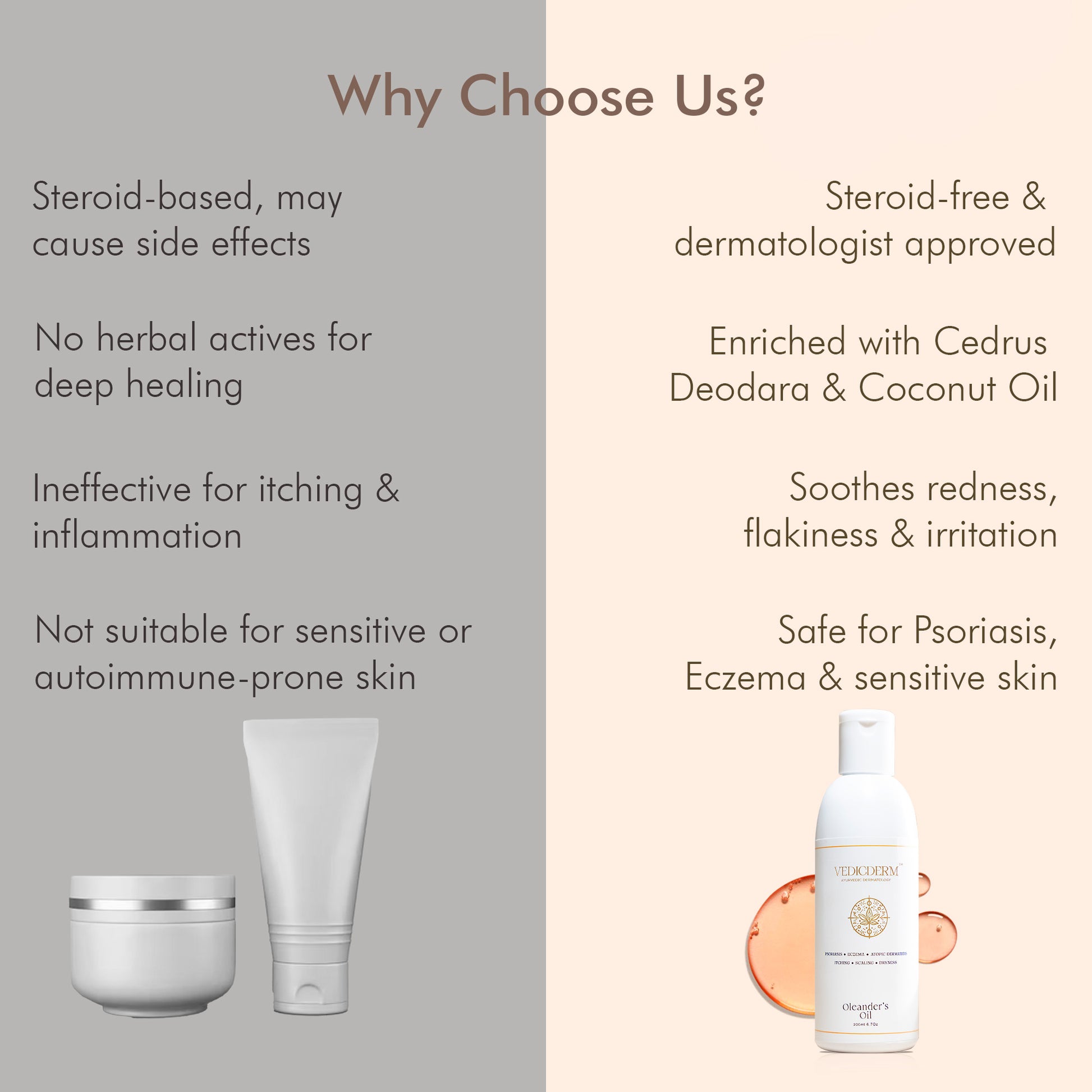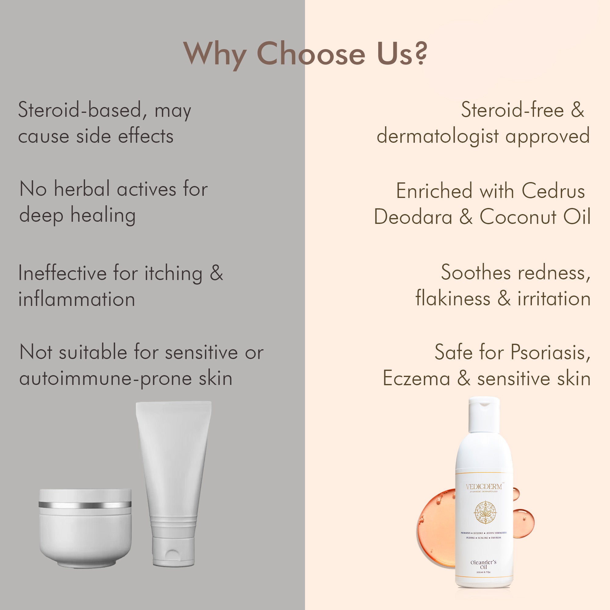 If you're on steroids or prescription creams, consult your doctor before stopping them suddenly. Vedicderm Psoriasis Oil can be used alongside other treatments and gradually replace steroid use under supervision.