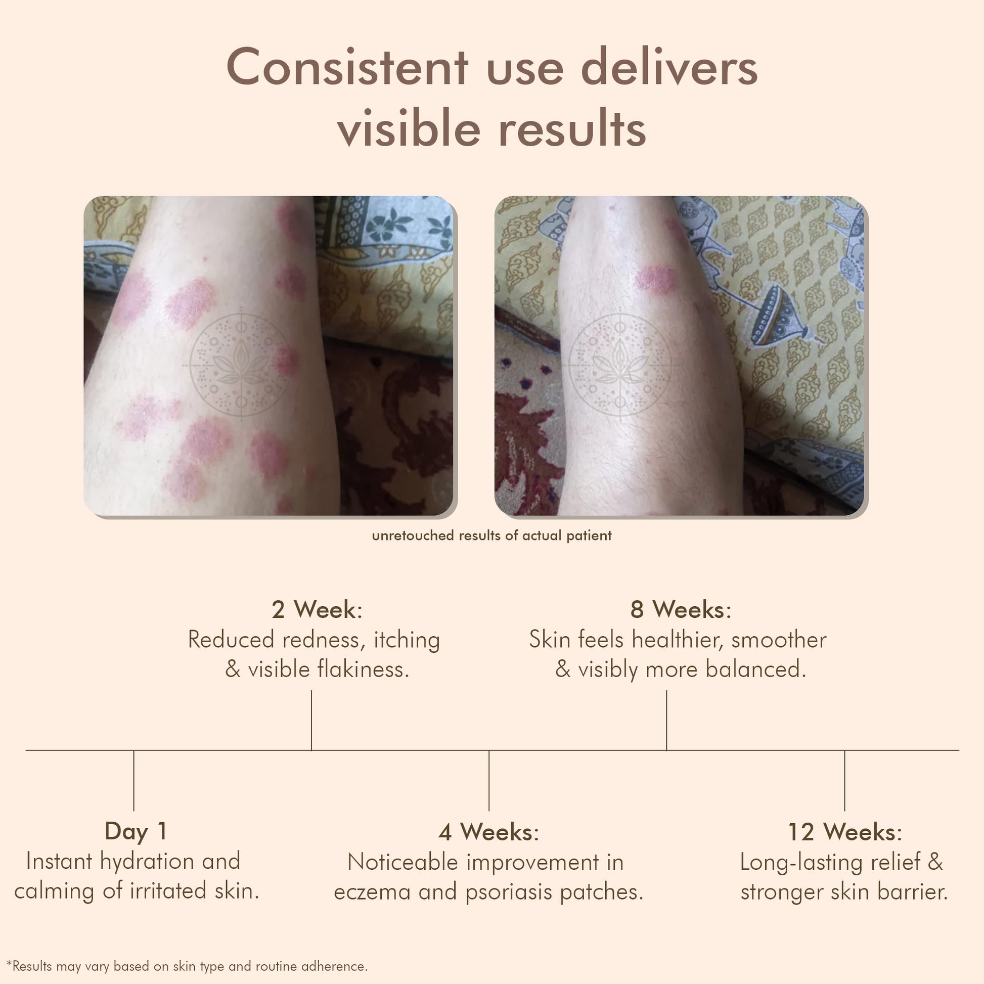 Many users notice reduced itching and redness within 7โ10 days. For deeper healing and reduction in plaques, we recommend consistent use for at least 4โ6 weeks.
